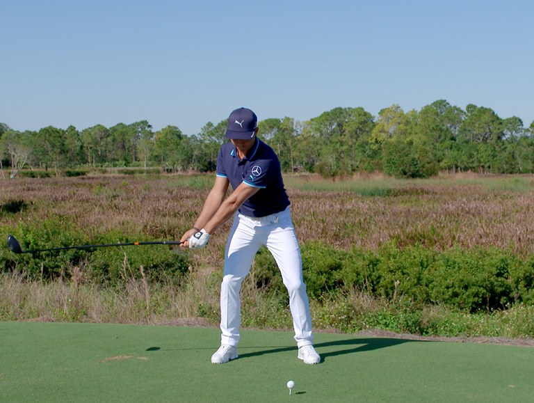 教練布區.哈蒙教導瑞奇.佛勒在擊球準備時設定前腳略微向外張開。「前腳向外張開利於下桿時轉動下半身,」哈蒙說。「瑞奇的右腳習慣向外張開,我們只是調整他的左腳更為向外張開。」
