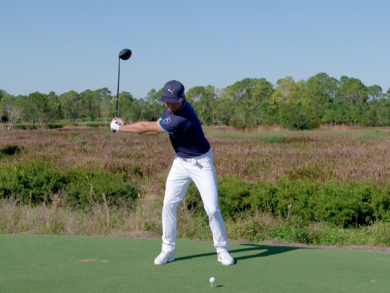 佛勒伸直右臂、完全轉動左臀部揮送球桿。「漂亮的收桿姿勢,力量完全勢放,」哈蒙說。「由於下半身轉動力道強大,左腳略微翻起,這無傷大雅。他可以看得出來他已經紮實擊球。」