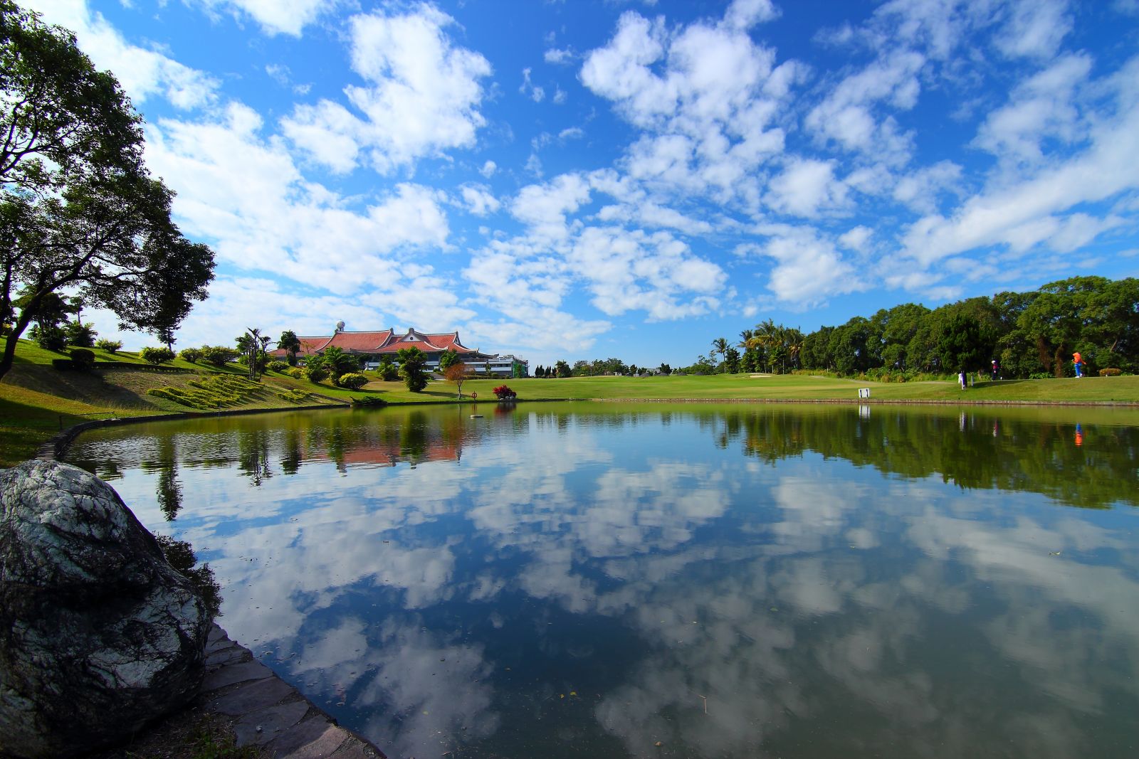 這座以休閒為屬性的信誼高爾夫俱樂部,從車子一路開進寬廣的台22線、國道3號、到進入球場的四線迎賓大道,就已經開始感受到南部人熱情的寬闊舒適感覺。再看見氣派宏偉、占地寬廣的紅瓦閩南福建風格建築大會館,以及碩大落地迎賓玻璃門兩旁的一對石雕麒麟,就可以感受到信誼有別於其他球場的獨特之處。