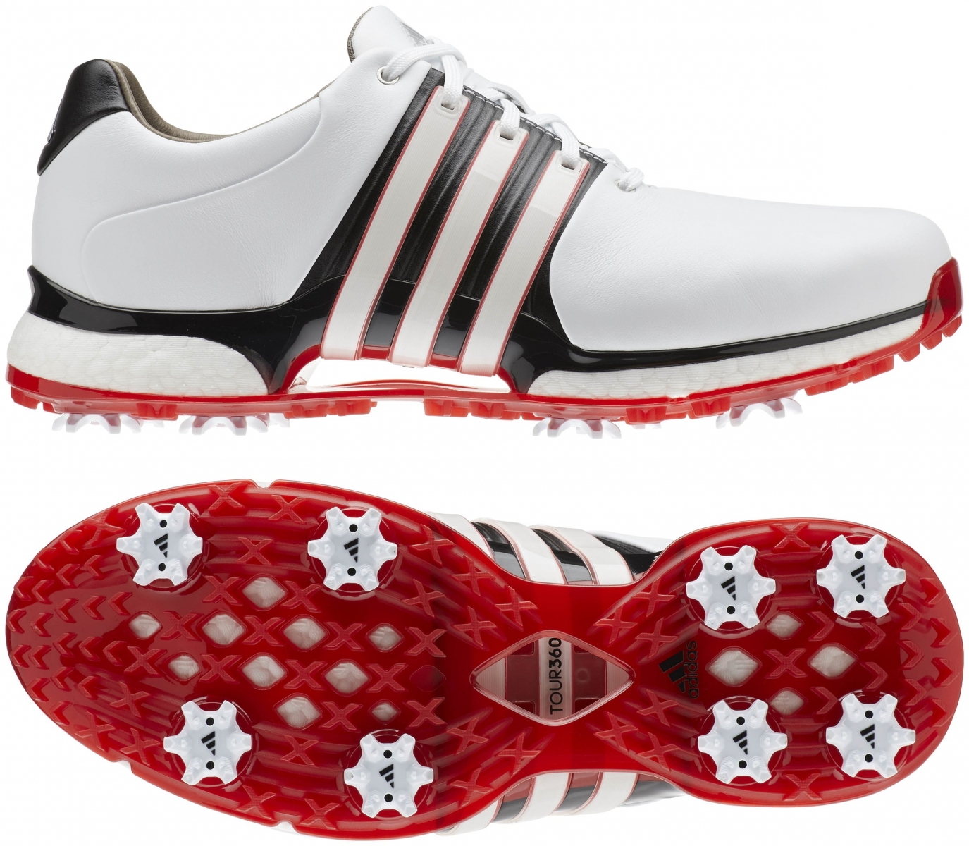 adidas Golf重新打造TOUR360 XT,其全新TPU大底備受矚目,採用新型八爪釘,搭配X-Traction輔助凹凸顆粒,增加額外抓地力及穩定性。TOUR360 XT省去前一款設計的爪釘,提升彈性與舒適度的同時亦減少整體重量。而業界最強緩衝BOOST也經過全面改造,在後跟與前足處的BOOST變得稍微更寬,延伸至底部配有較大的擴充氣孔,並採用新式鍛造技術,加熱了鞋面部分,藉以增加中足部位的穩定性,同時減少整體球鞋重量,進一步提升穩定性與舒適度。TOUR360 XT鞋面採用頂級皮革材質,並在大中華區推出以經典紅白色系為主的重點鞋款。