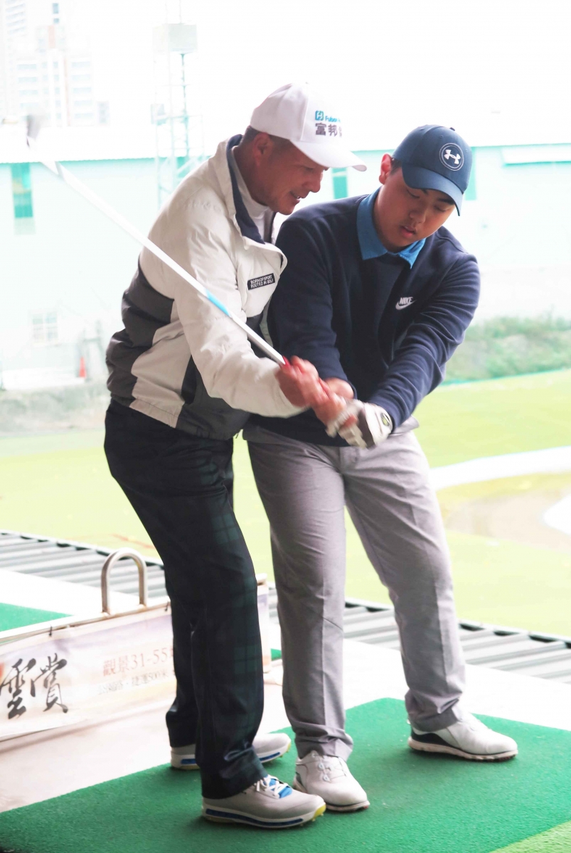 葉彰廷則以指導學員周柏岳、周翊庭兄妹檔為例說,「周柏岳因握桿上的小缺點,造成上下桿時平順度稍受影響。周翊庭手腕用太多,腰用太少,只要稍做調整,手腕減少些,腰多用些,即可更好,打出更佳的球質。」葉彰廷同樣強調了運用下半身的重要。