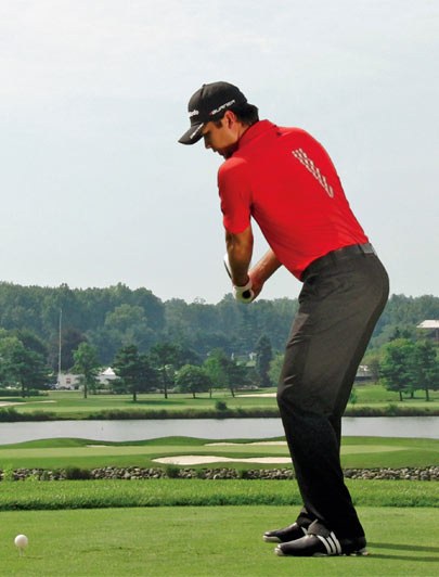換言之,戴採中性握桿(不是強勢也不是弱勢),上桿和下桿平面基本上完全相同,所以揮桿過程中無需做任何調整回正桿面擊球。