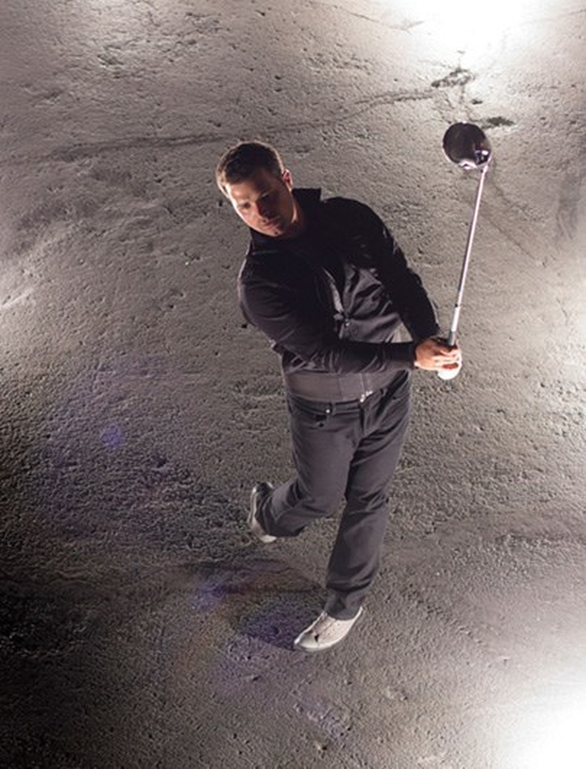 另一個有助於強力揮桿的方法,就是以夠快的速度揮桿,收桿時桿身碰觸頸背。這需要一點勇氣,不過有助於增加揮桿速度。還有,收桿時請檢查是否還穩穩握住球桿。如果是,就表示你具備高速揮桿的控桿能力。