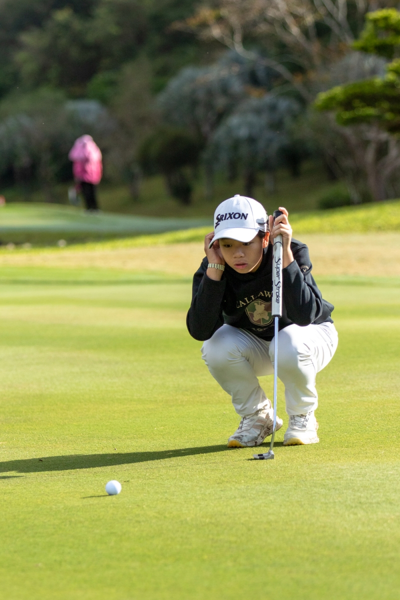 首輪天氣上午氣溫約17 、18度,午後降至13至14度,雖然天氣偏涼,但無降雨干擾,整體條件穩定。如何在溫度變化中維持手感與節奏,也成為選手們的重要課題。男子組方面,2025年冠軍尤泓諭與剛從NCAA賽場返台的黃凱駿,同以73桿並列第一。在他們身後,追兵同樣來勢洶洶,兩位NCAA強將陳禹綸與蔡安杰同以74桿暫並列第三,許勝傑75桿獨居第五,鄭以樂、朱子誠、吳承恩與謝睿哲同以76桿暫並列第六。彼此桿數都僅差一桿,戰況相當激烈。